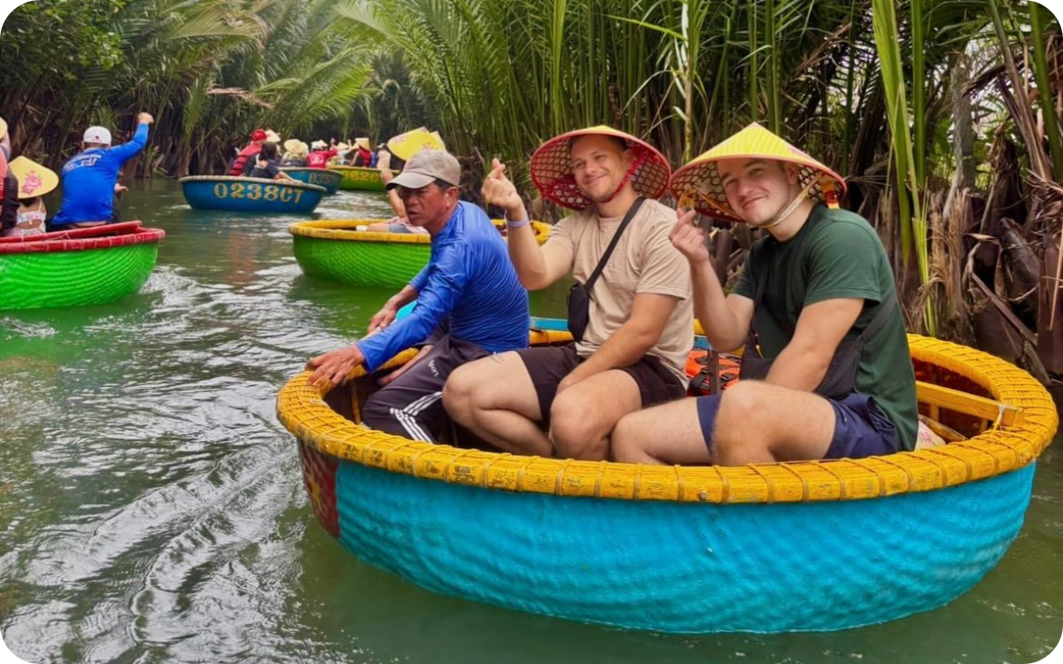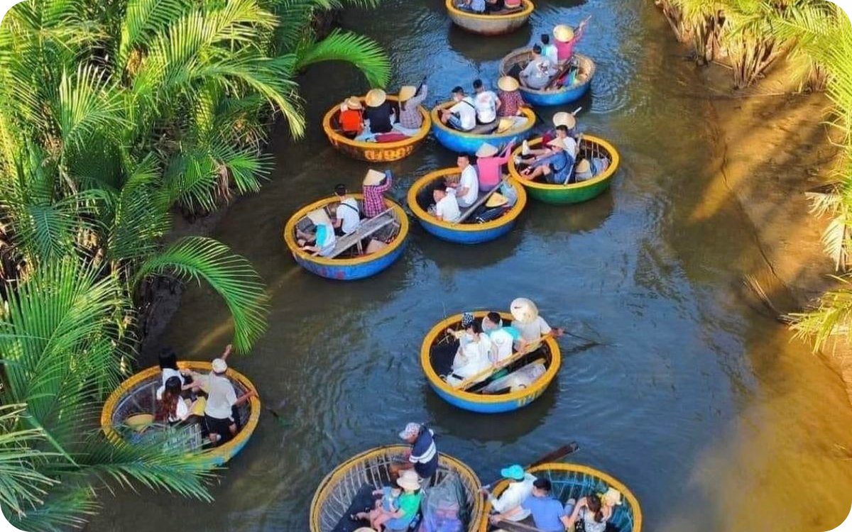 Experience basket boat rowing at Dung Coconut Boat Tour is an exciting, unique journey that is deeply rooted in local culture in the river region of Hoi An.