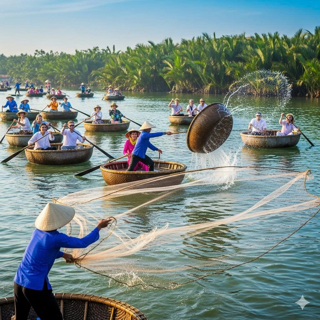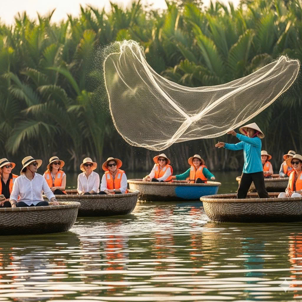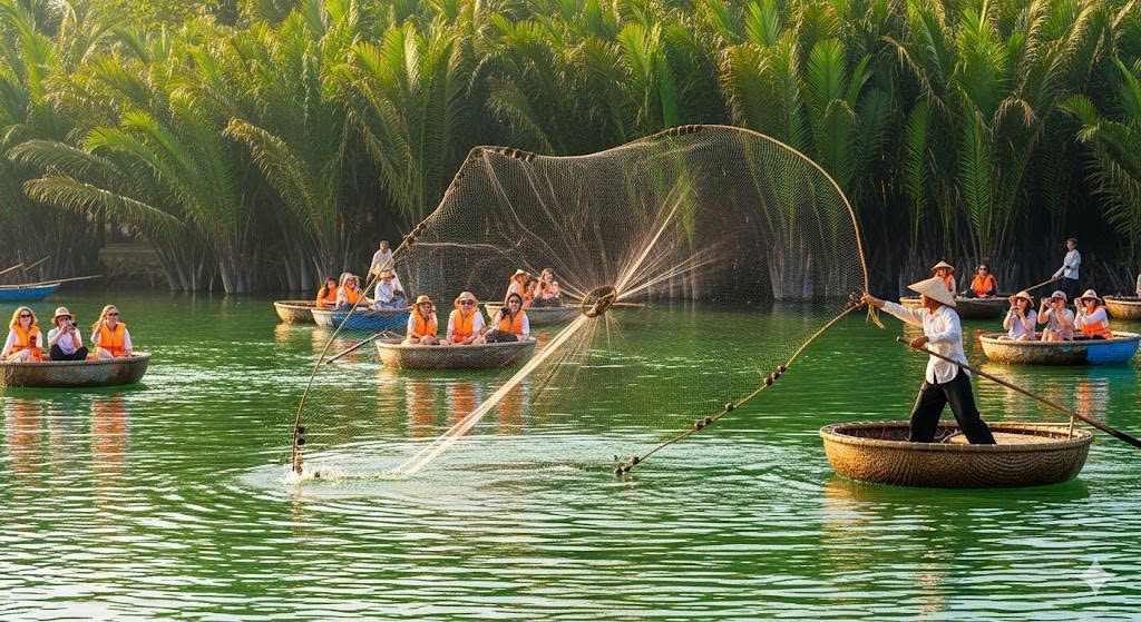 “ Experience the mesmerizing beauty of **Traditional Net Casting** performances during your basket boat journey ...