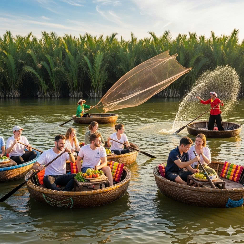 Basket Boat Rowing Experience at Bay Mau Coconut Forest offers visitors an authentic glimpse into ...